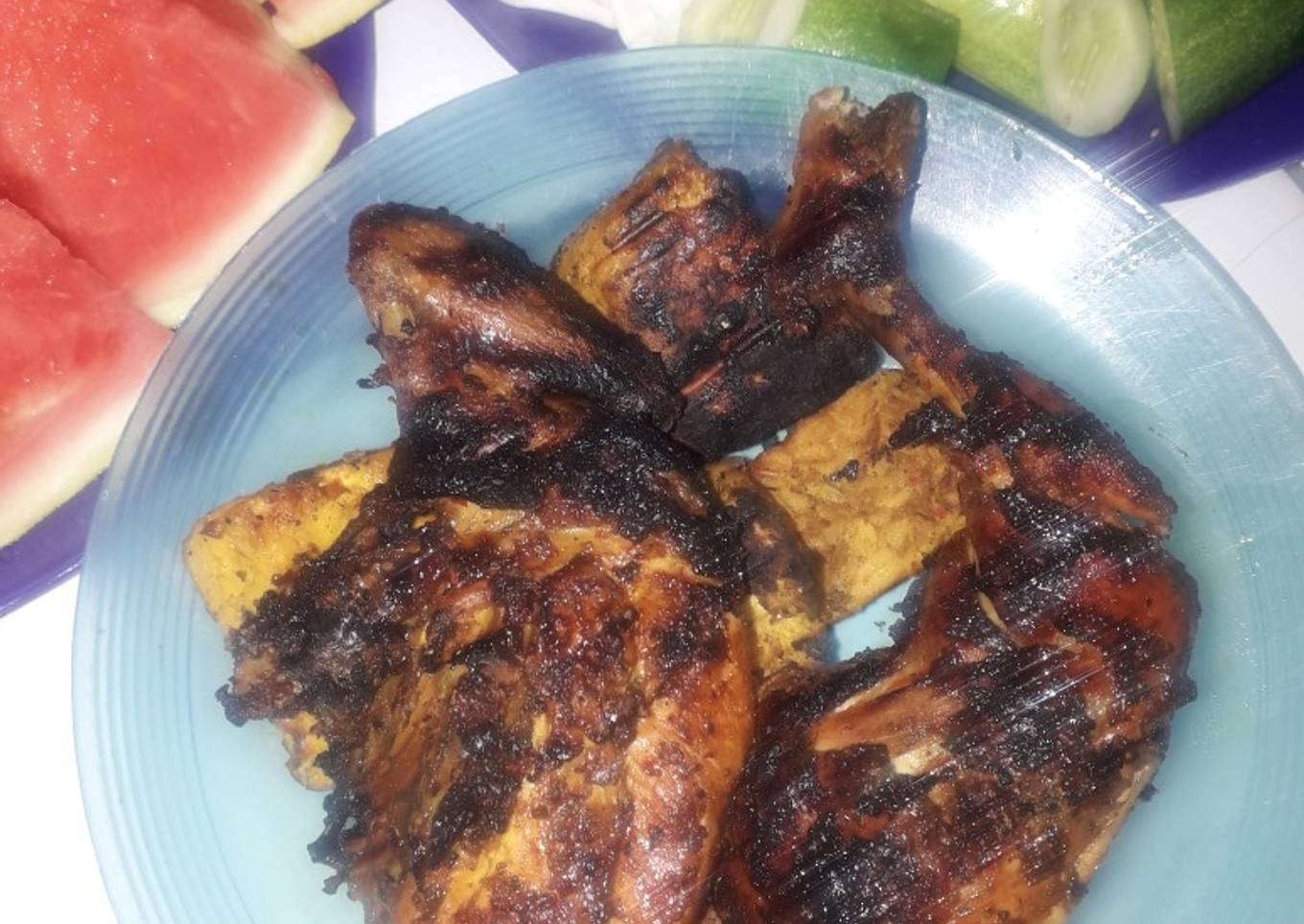 - Bakar ayam sampai kematangan yg dingin kan jangan lupa di bolak balik ini saya pake bumbu ungkepan buat bumbu olesannya