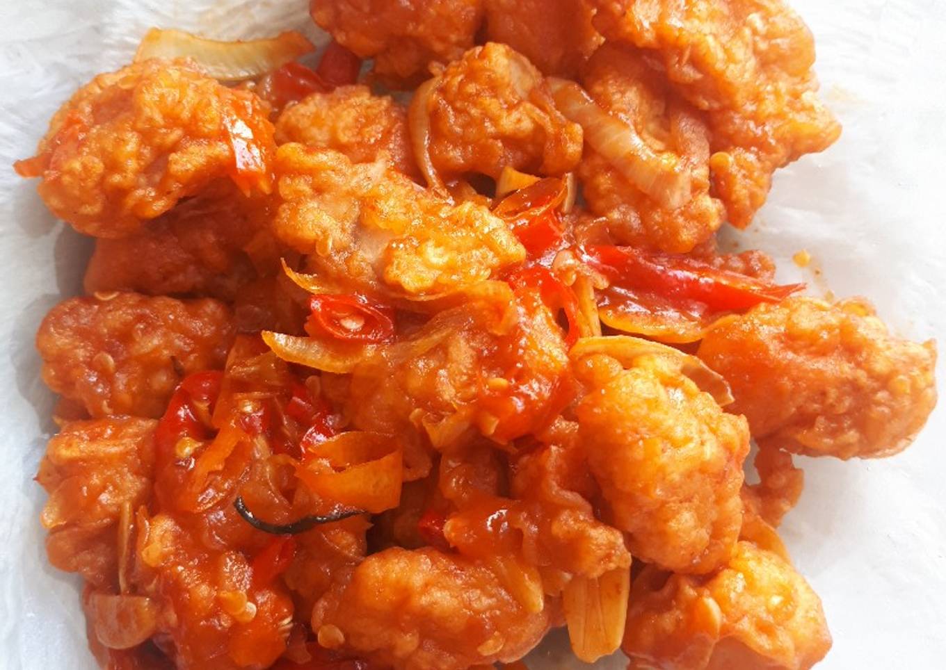 - Tunggu sampai saos mendidih, masukkan ayam, aduk sebentar, sajikan