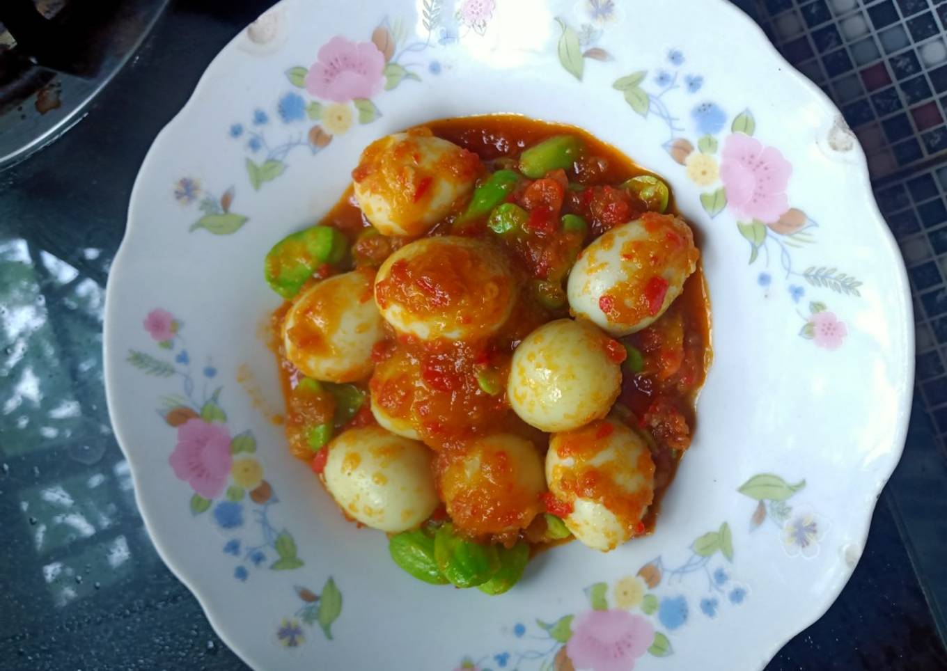 Awalnya diberi telur puyu oleh wali murid,ada Pete juga. kalau di rebus jadinya B aja, eh melipir ke Coolpad nyari resep, Nemu deh resep yang cocok.