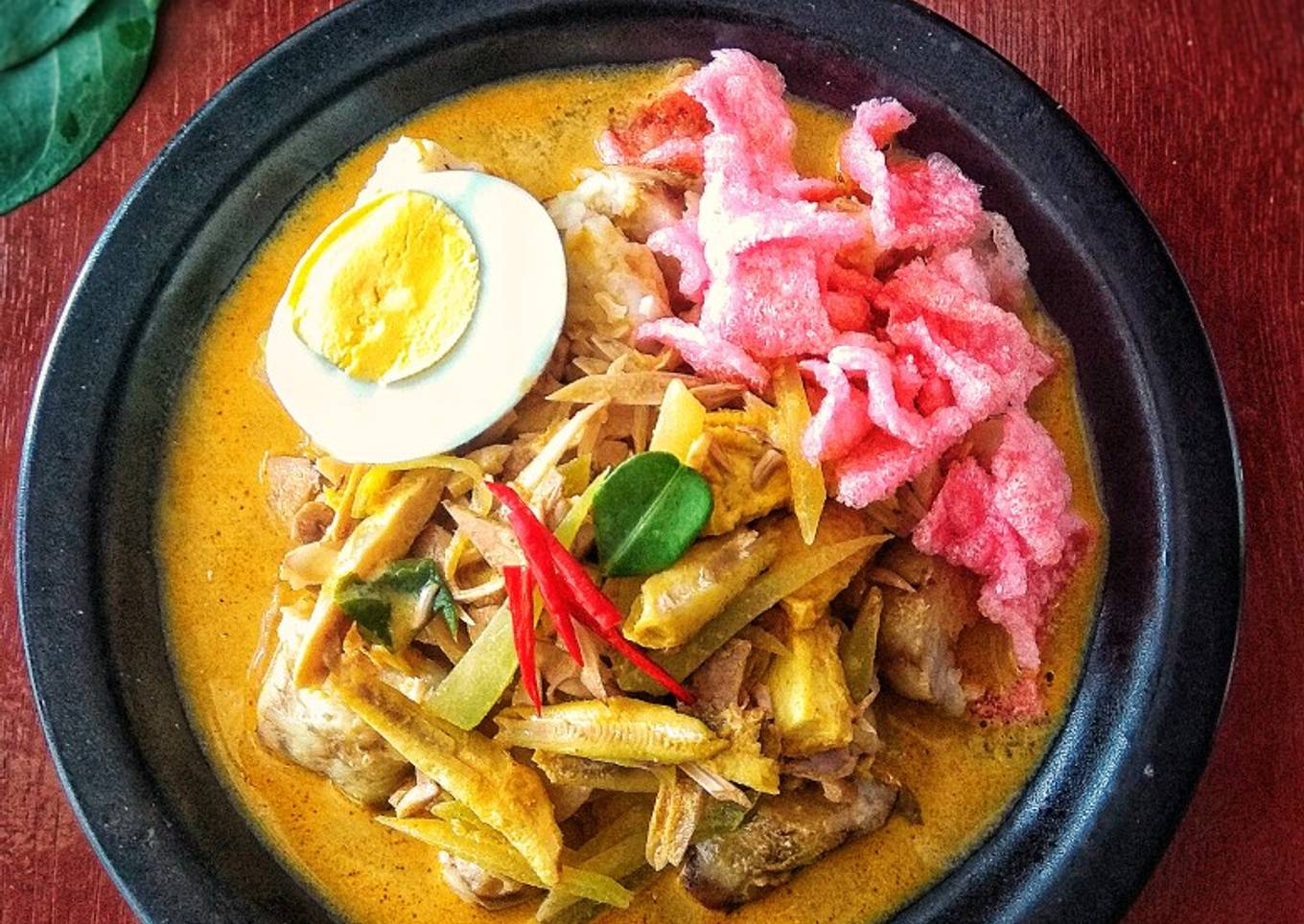 - Kecilkan api, lalu tambahkan santan instan. Masak sambil sesekali diaduk rata. Setelah sayur matang dan bumbu meresap, tes rasa lalu angkat.