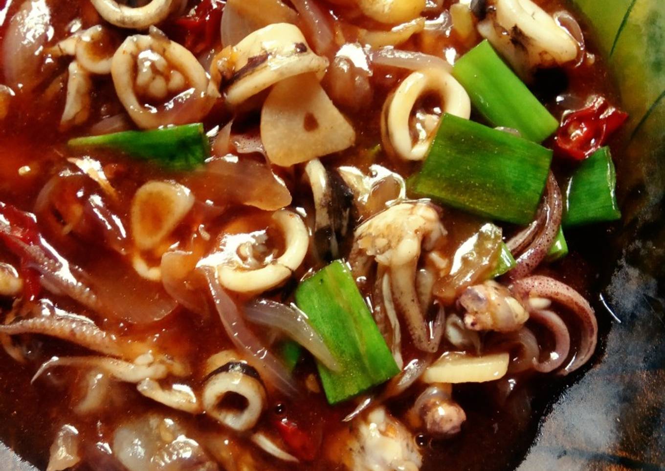 - Cumi saus padang siap di hidangkan.