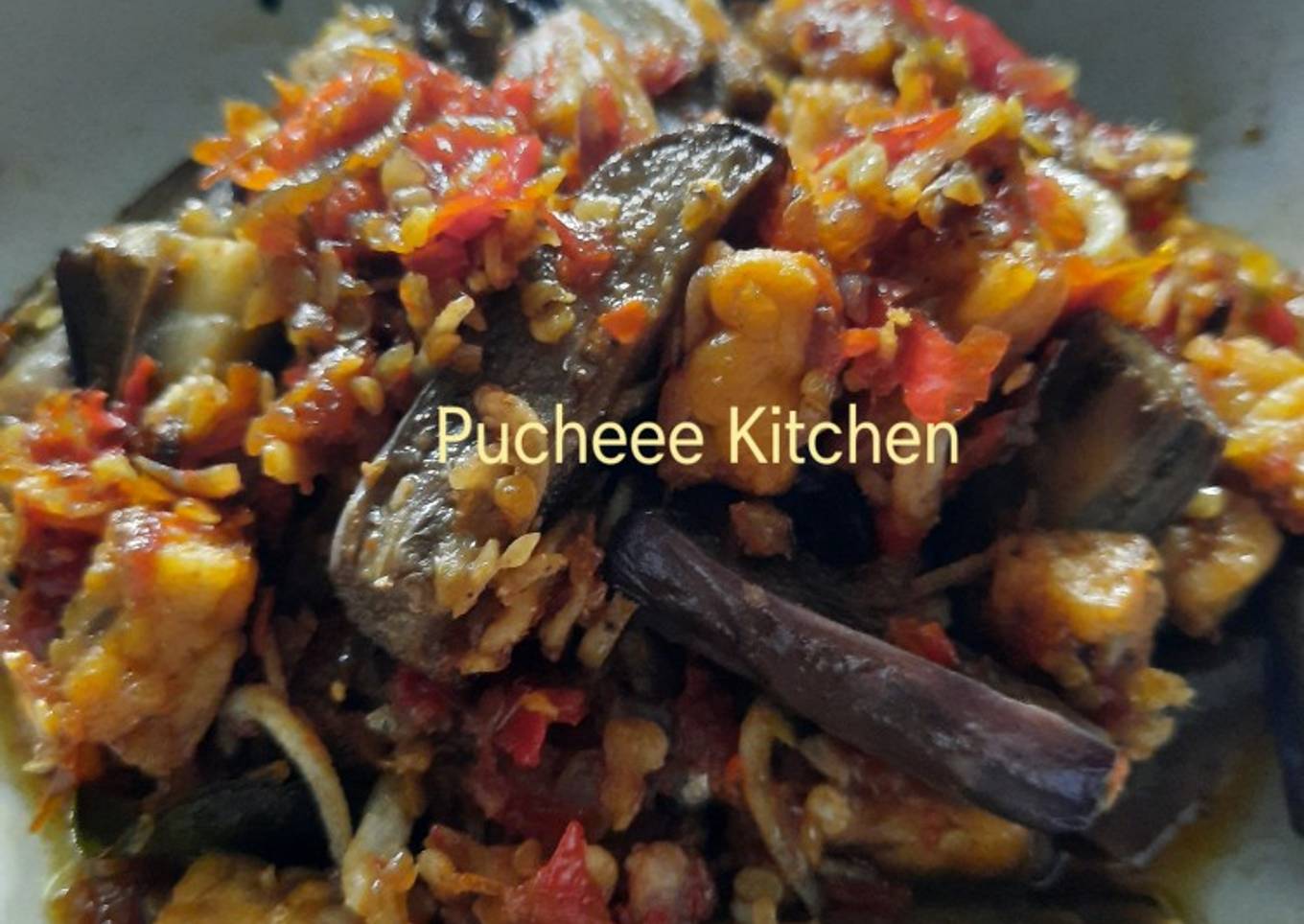 - Kemudian masukan terong, tempe, teri. Aduk lagi hingga rata. Siap disajikan.