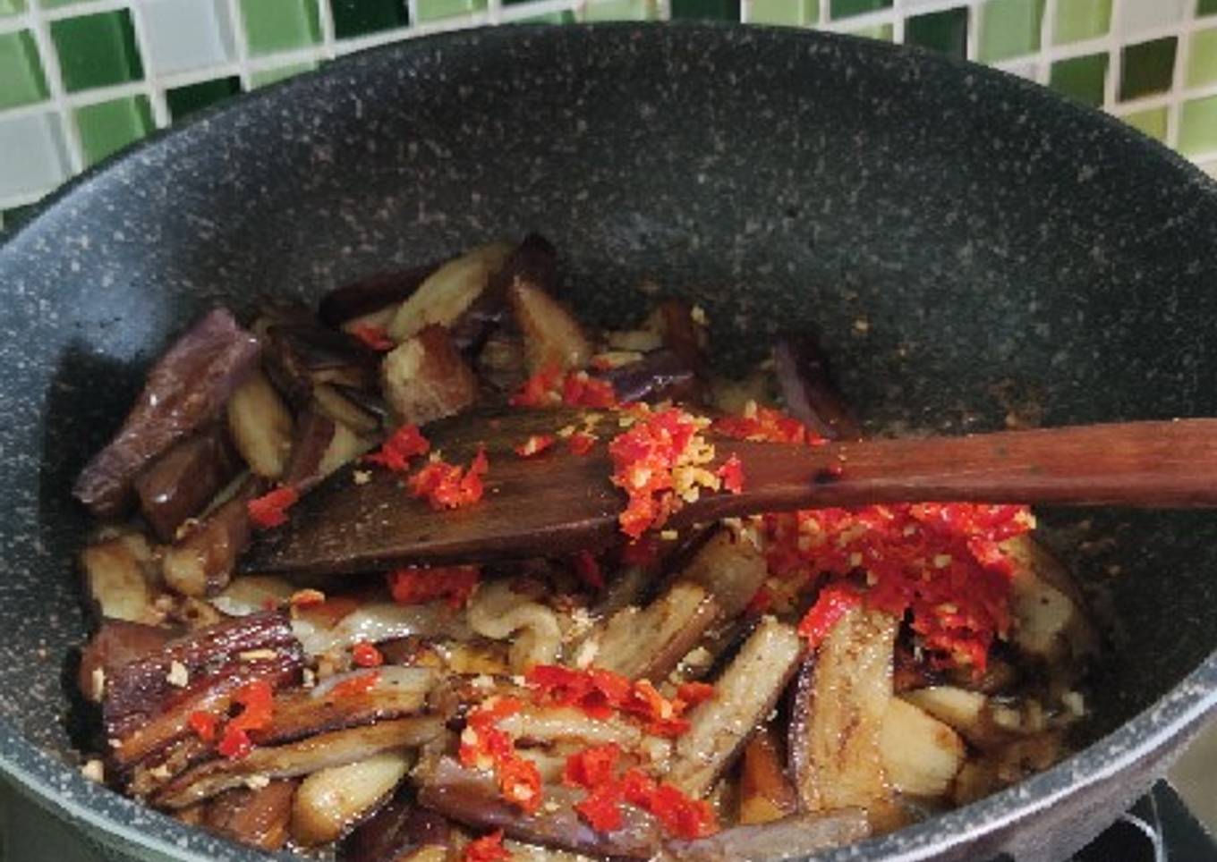 - Tumis sebentar saja dan lgsg masukkan terong yg sudah digoreng + cabe