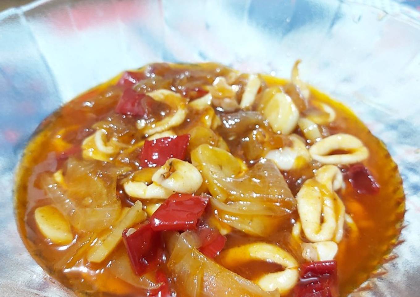 - Setelah saus terasa cocok di lidah, campurkan tumisan baby cumi ke dalam saus. Aduk hingga rata.