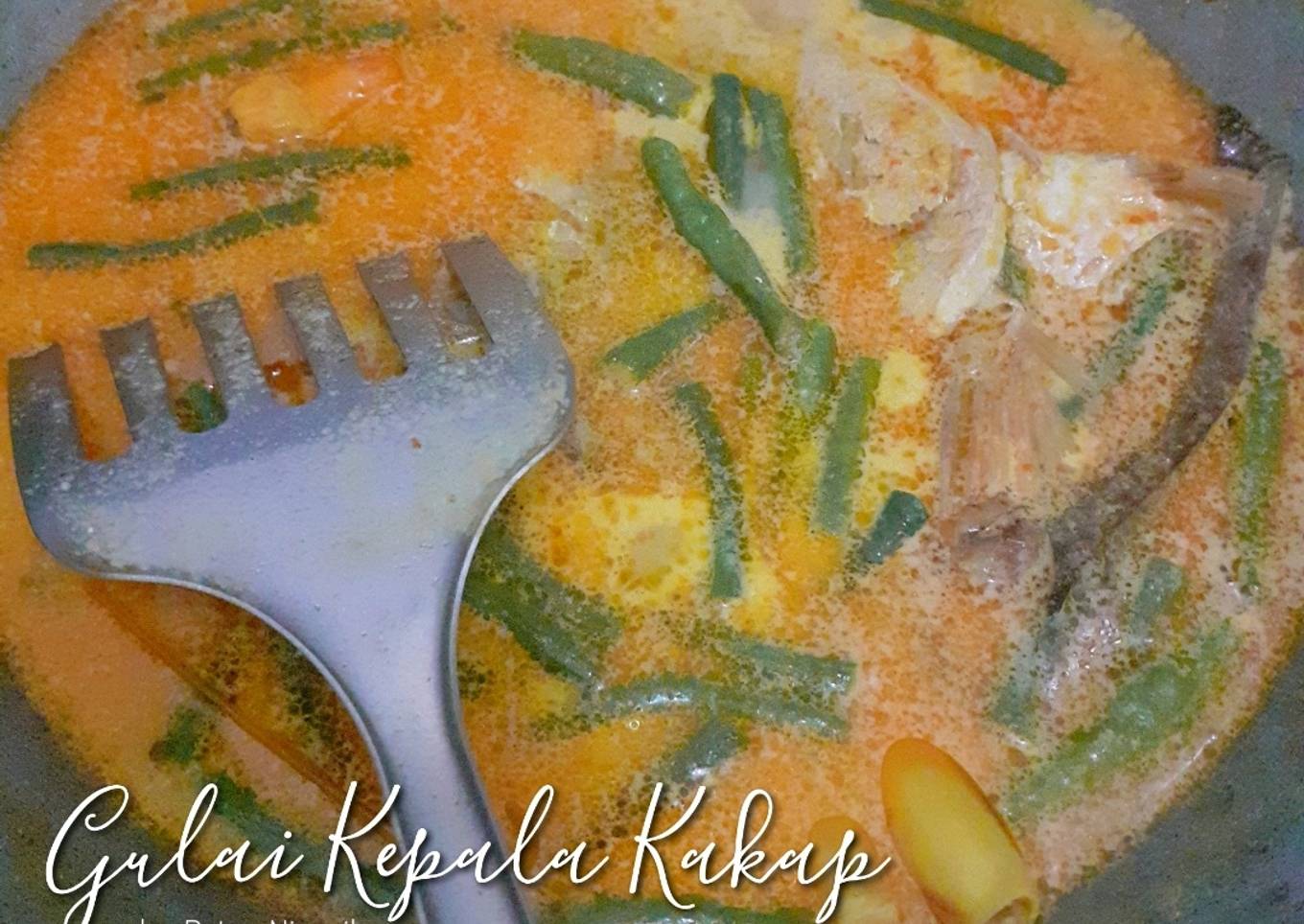 Assalamu'alaikum Cookpaders. Waktu lalu liat kepala kakap di tukang sayur. Sengaja beli satu dulu buat nyoba bikin gulai. Eh ternyata kurang Cookpaders. Enaknya satu kepala ikan ini buat sendirian ya, lebih puas. Tapi karena stok dirumah cuma satu gak apa2 lah ya itung2 kali ini latihan bikin gulai. Hahaha. Resepnya nyontek dari gulai udang khas Riau -nya uni Novi dan disesuaikan dengan bahan2 yang ada di rumah.. Manteb banget pasti rasanya. Besok bisa nyobain gulainya pakai udang. Kuahnya sengaja dibanyakin biar pas diakhir bisa disruput ๐คญ. Source: Mimi 4A Cookery #KualiEmak #KampoengRamadan #CookpadCommunitu_Depok