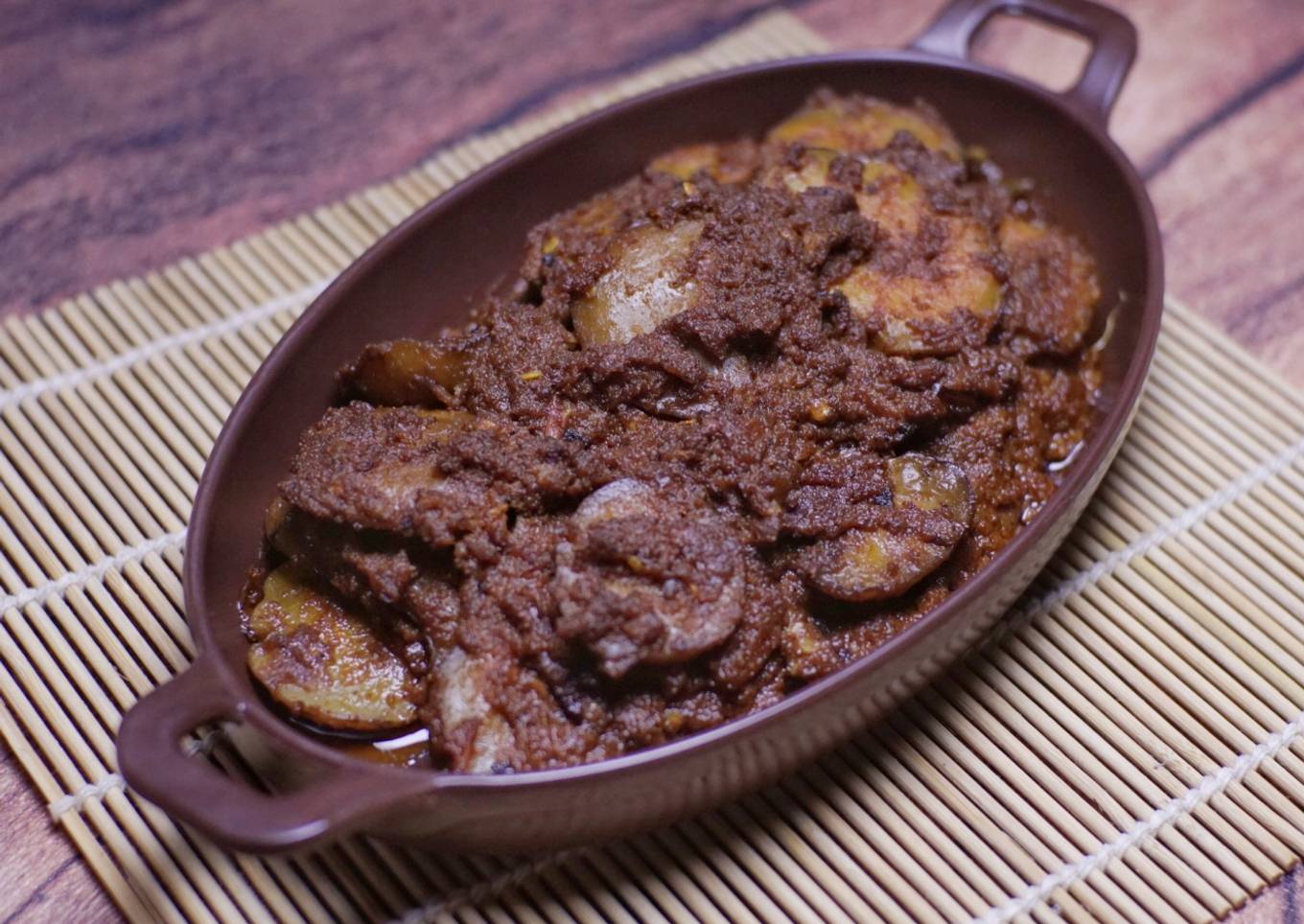 - Tambahkan gula, garam, masako ayam, dan micin. Tes rasa. Masak hingga santan mengental, aduk berkala sehingga tidak gosong di wajan. Diamkan hingga rendang mengering dan berminyak. Pastikan menggunakan api kecil ya. Sajikan untuk menu berbuka bersama nasi hangat. Selamat mencoba.