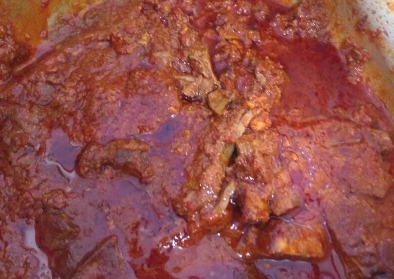 - Masukkan cabe merah besar yang sudah diblender ke dalam panci air rebusan daging. Aduk rata masak hingga air berkurang tambahkan garam, gula, kaldu bubuk